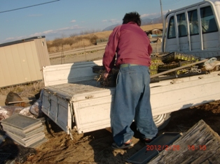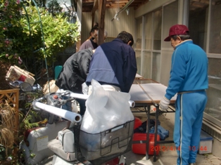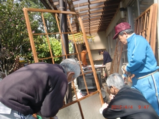 白根地区の障害者夫婦のお宅で10枚の障子の張替え6人で風の吹く中・・・・
