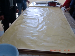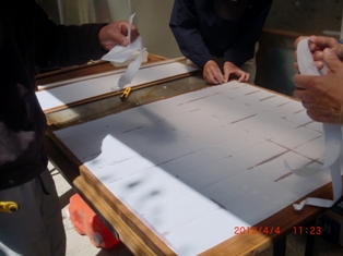 襖の張替えの練習   アイロンでなく水を使っての方法に四苦八苦