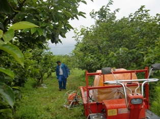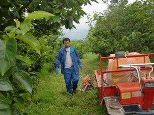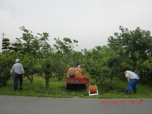 小林君 塚田さん  滝沢さん  私で  今村さん所有の柿畑で殺虫剤