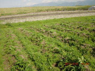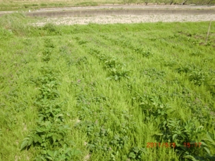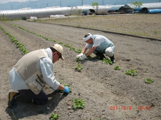 107番にナデシコを植えている時に柴田君がジャガイモの芽欠きをして