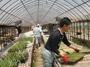 保科さんの指導で…坂田君 新ボランティアの山下君