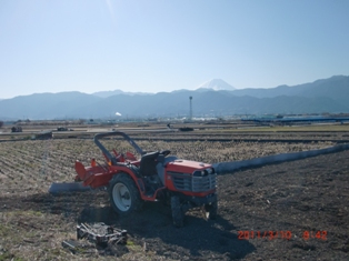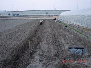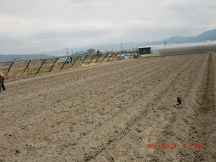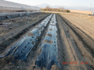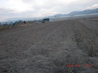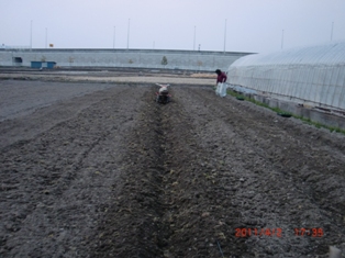 8番と2番のハウスの隣を・・・石灰撒いて・種糟・化成肥料そのつどトラクター作業