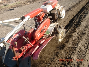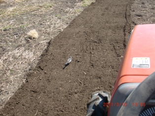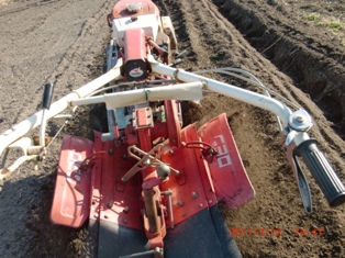 8番の田んぼに敬子チャンがジャガイモ植える・・・・・畝立て機が大活躍(^-^)