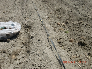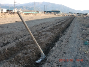 ジャガイモをなるべく深く  春大根は3袋2粒まき