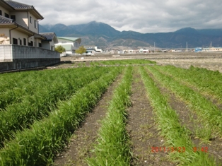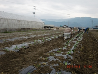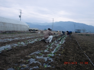 依田さん柴田さん坂田君と私の4人で田んぼの半分600株のキャベツ植える