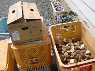 1袋半を北側に手でまく  草はそんなに出ていません