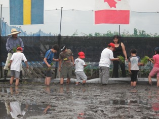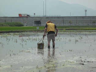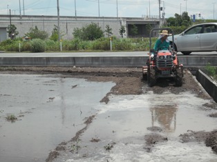 15番を重松さん代かき      10番の草…拾い  若者      早くしろや~お田植えできないぞ~