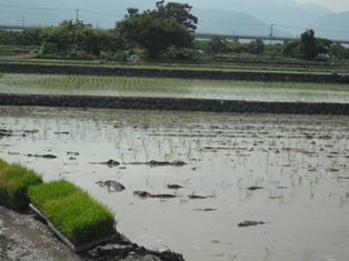 田舎道歩いて下さい100人の田植え☆チビッ子ボランティア・ブラジル校で2年経験済み