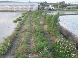 昨年大量に発生したので仮代かき後に薬剤散布