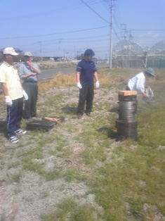 私の田んぼで…薪で     飛び入りで