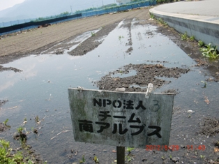 水面の高さの調整は落とす水口の泥の高さで調整します