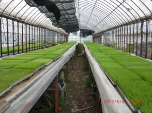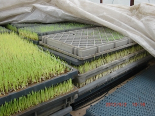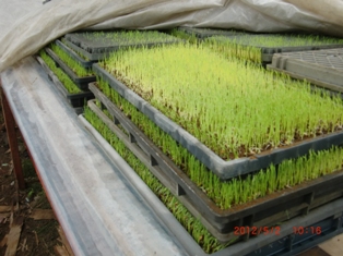 中5日で 正しく重ねた育苗箱がズレテいます  光が当たっていなかったので黄色ですが