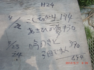4月22日5人でコシヒカリ・あさひの夢 4月23日高橋夫婦 24日敬子ちゃん若者