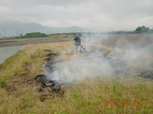 32番ワラを燃しました 消防本部に電話で届出       2時間後トラクター作業